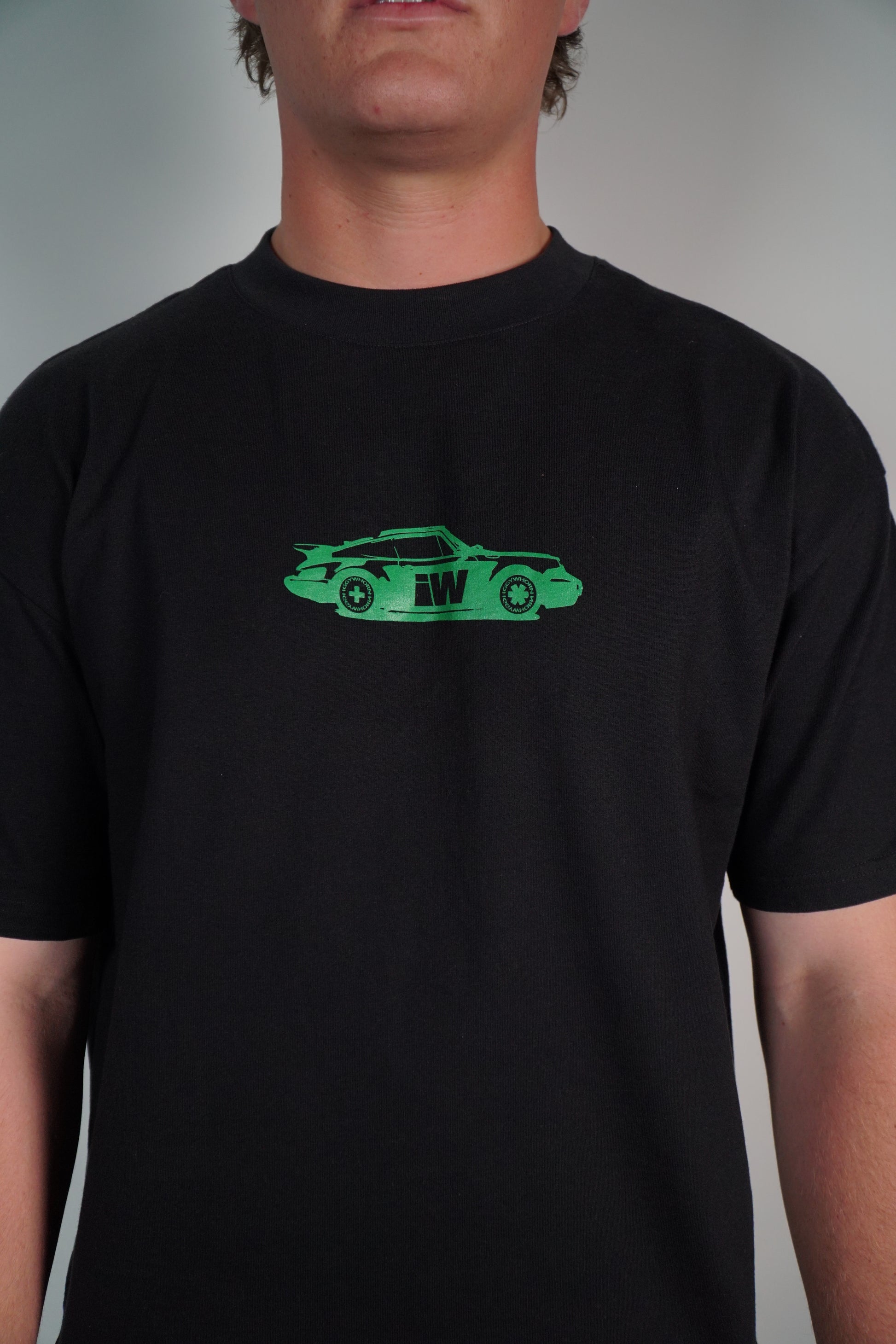 Bold, clean, and built to last. This heavyweight 245 GSM black tee is made from premium cotton and designed with a structured, boxy fit that holds its shape. Front and center, a striking green Iggy Porsche graphic pops off the dark canvas—bringing together streetwear attitude and automotive edge. Minimal in the back, all business in the front.